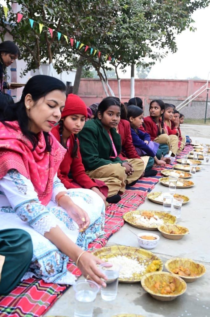 जिला पदाधिकारी वर्षा सिंह ने जमीन पर बैठकर बच्चों के साथ स्नेहपूर्वक भोजन किया।