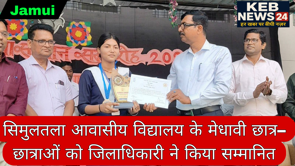 खबर एक्सप्रेस बिहार न्यूज 24, जमुई ( बिहार) : जिला के सिमुलतला आवासीय विद्यालय के मैट्रिक परीक्षा में उत्कृष्ट प्रदर्शन करने वाले टॉपरों सहित अन्य मेधावी छात्र-छात्राओं को आज जिला पदाधिकारी श्री नवीन (भा. प्र.से.) द्वारा एक गरिमामय समारोह में सम्मानित किया गया। इस अवसर पर उन्होंने विद्यालय के बेहतर प्रबंधन की सराहना करते हुए शिक्षकों को विशेष रूप से धन्यवाद दिया।